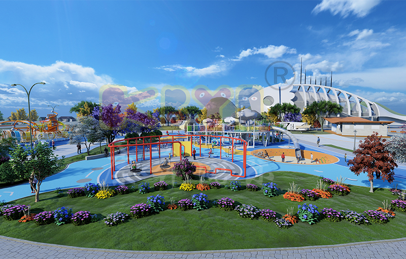 樂園附有一條蜿蜒的小溪,孩子、成年人和老年人可在這欣賞水景。這條小溪沿線有許多密集的長凳和科普類型的游樂設施,如阿基米德取水器、壓水槍、互動水渠等,朝向動線步行空間,還種植樹木提供陰涼...